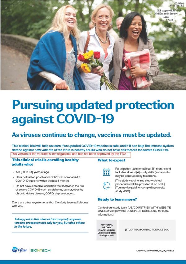 This clinical trial will help us learn if an updated COVID-19 vaccine is safe, and if it can help the immune system defend against new variants of the virus in healthy adults who do not have risk factors for severe COVID-19.